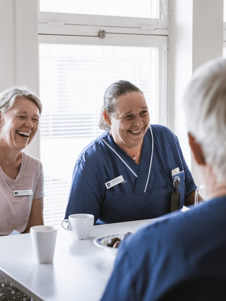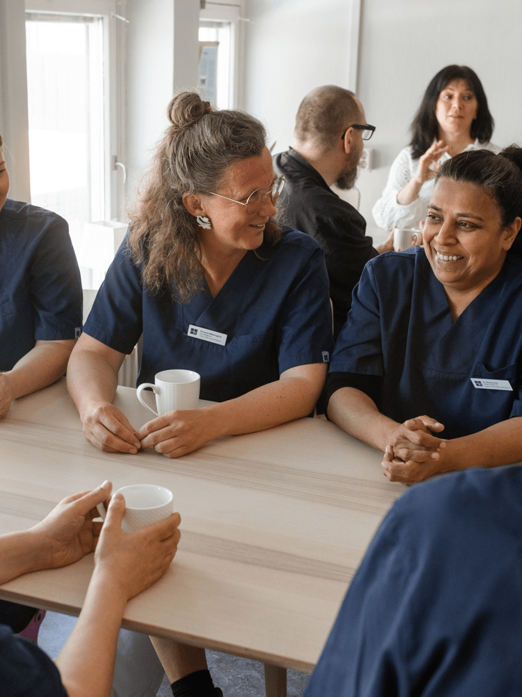 Vi har en bra gemenskap och har ett bra samarbete, trots att vi ofta är ute själva hos patienterna. Tillsammans jobbar vi för att vara tillgängliga och närvarande för våra patienter varje dag